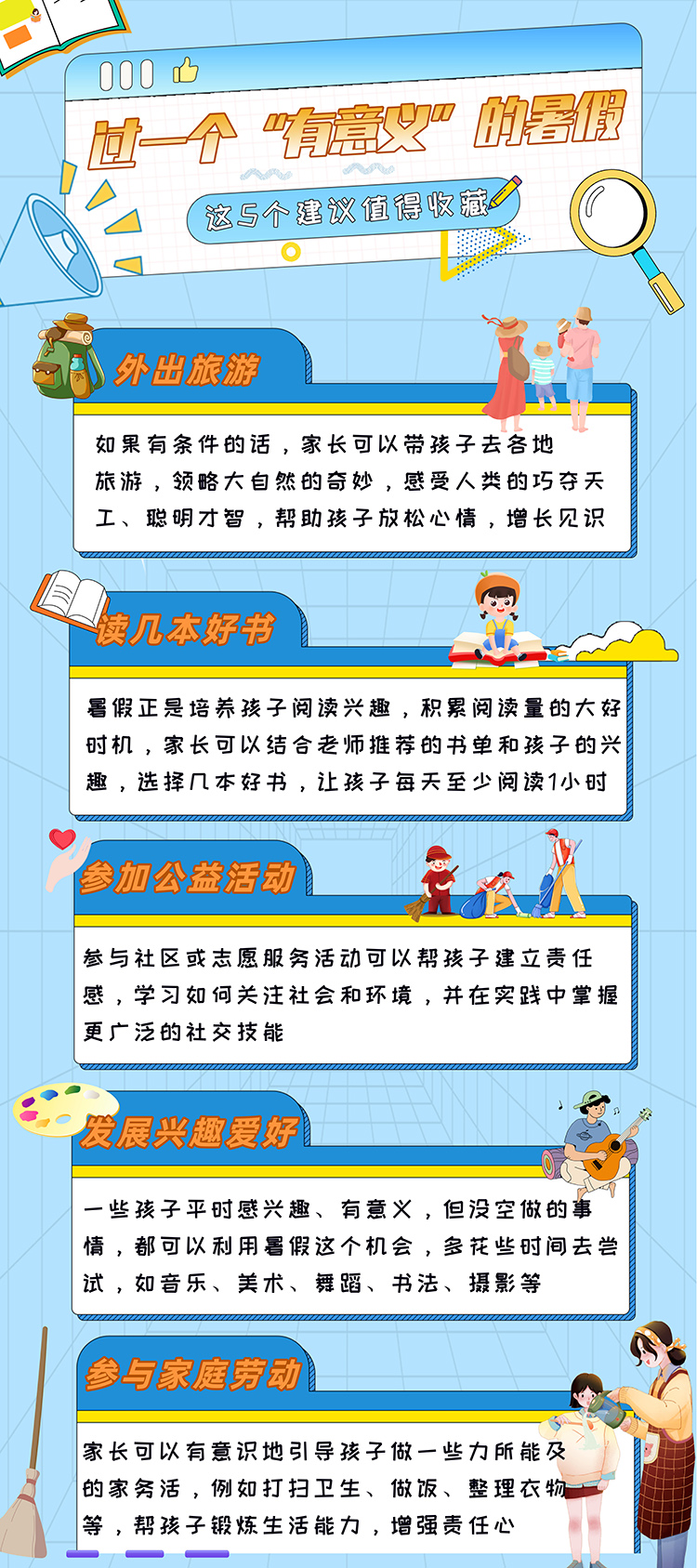 希望每个孩子都能在家长的陪伴下度过一个充实、有趣、意义非凡的暑假!(编辑/海报设计:冯文雅 终审:陈竞超 综合新华社、人民日报等媒体报道内容)