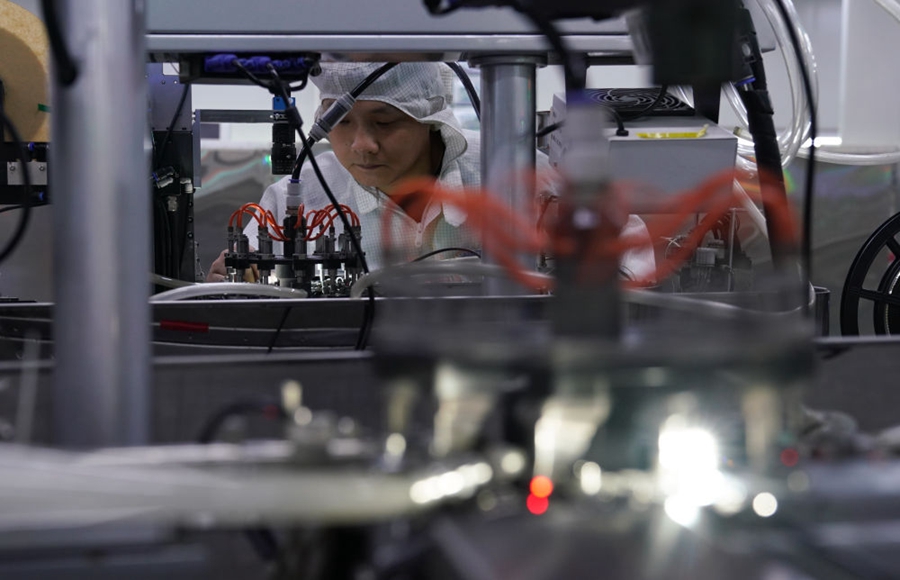 武汉光谷,技术人员在光模块生产线作业 程敏/摄