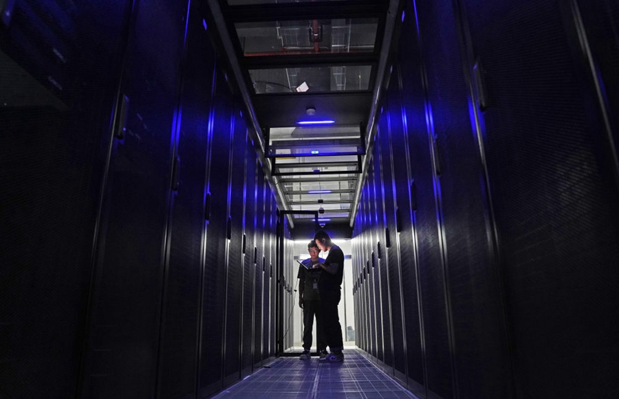 位于南昌经济技术开发区的中国联通智·云数据中心,工作人员在检查服务器运行情况 万象/摄