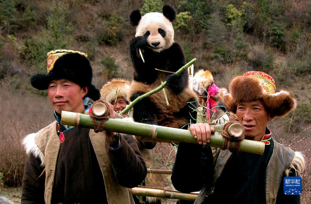 四川宝兴县村民与大熊猫和谐共处(资料照片)。新华社发(宝兴县委宣传部供图)
