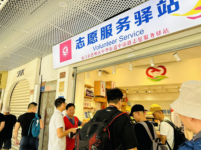 7月至8月正值旅游旺季,风光旖旎的厦门受到全国游客的青睐,中山路步行街上游人如织。为游客指路、供应开水、提供法律咨询、提供手机应急充电服务……游客深入厦门各处,迎接他们的不只有美景、美食,还有厦门广大志愿者“不打烊”的志愿服务。
