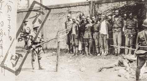 图为1937年8月23日,日本海军特别陆战队竹下部队将被俘虏的中国军人捆绑在一起甚至予以枪杀的情景。书中刊印照片。