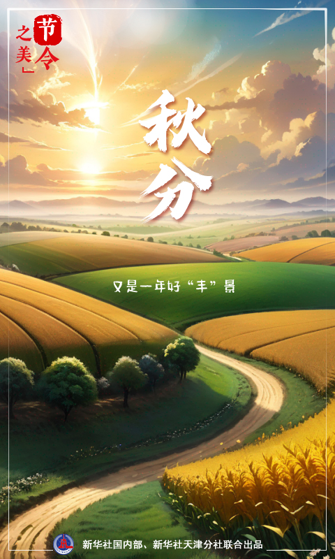 新华社天津9月23日电(记者周润健)“暑退秋澄气转凉,日光夜色两均长。”北京时间9月23日14时50分迎来二十四节气中的秋分,此时节,稻浪起伏翻滚,又是一年好“丰”景。