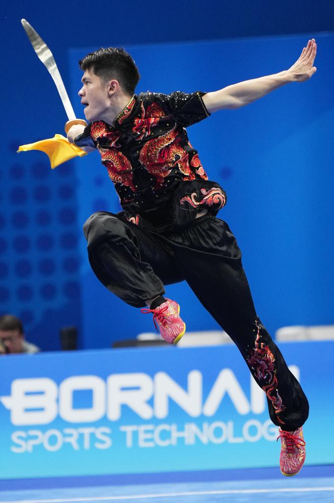 9月27日,马来西亚选手陈思卫在刀术比赛中。新华社记者 李一博 摄