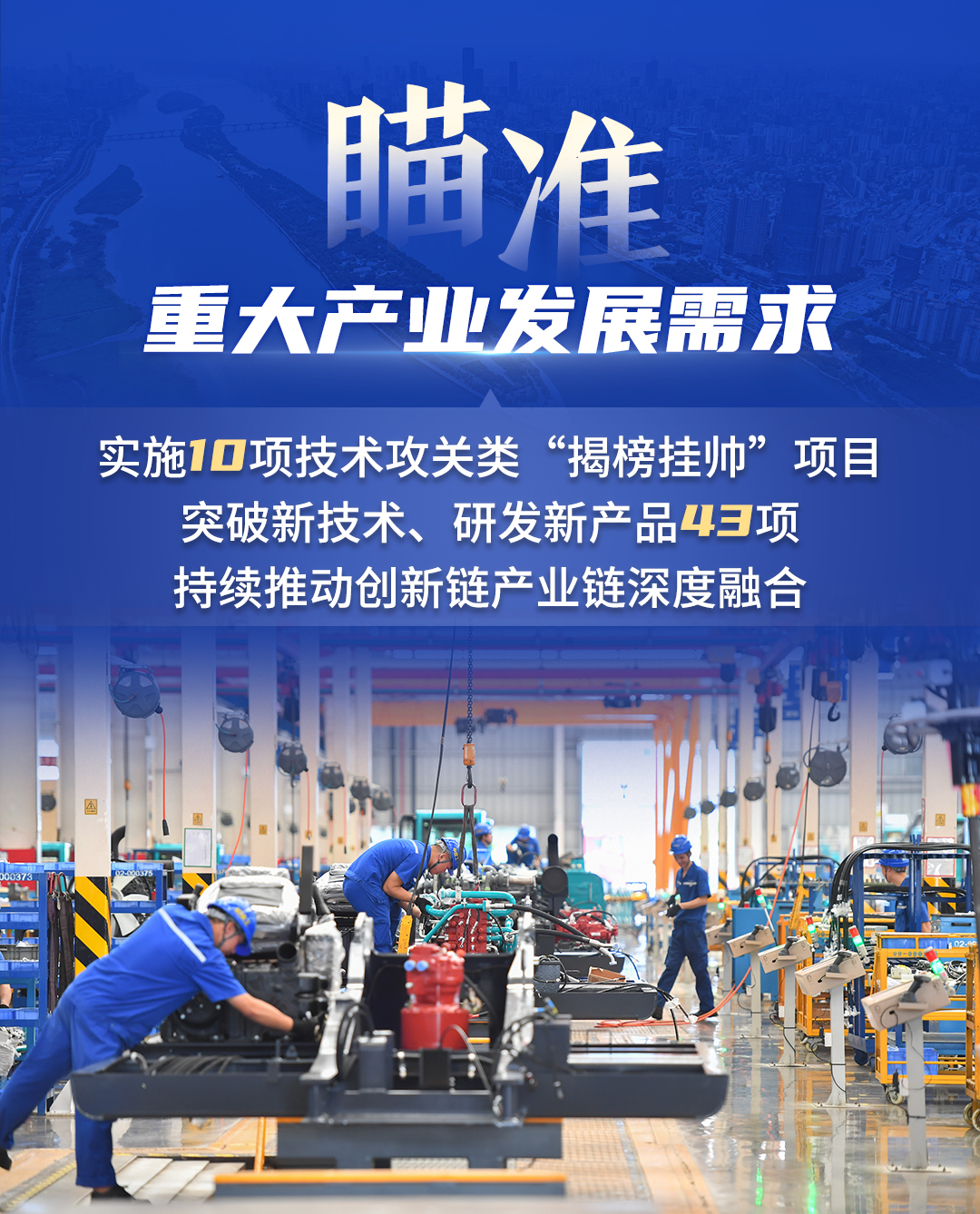围绕先进制造业、新一代信息技术、互联网经济等产业的重大需求,湖南近年实施10项技术攻关类“揭榜挂帅”项目,突破新技术、研发新产品共计43项,培养各类科技人才54人,持续推动创新链产业链深度融合。