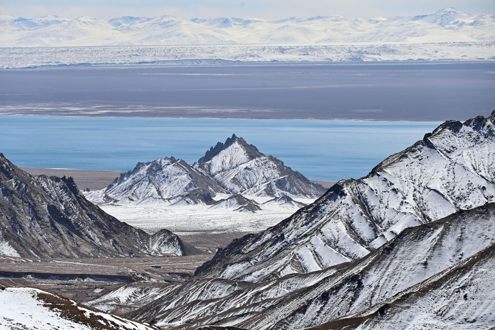 2023年10月18日在新疆阿尔金山国家级自然保护区拍摄的山峰和阿雅克库木湖。新华社记者 李响 摄
