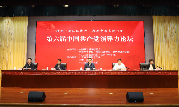 近日,由中国领导科学研究会、中共中央党校(国家行政学院)党的建设教研部、中共山东省委党校(山东行政学院)共同主办的“第六届中国共产党领导力论坛”在沂蒙干部学院举行。本次论坛以深入学习贯彻党的二十大精神为宗旨,以“提升干部队伍能力,推进中国式现代化”为主题,重点研讨了在推进民族复兴历史伟业中怎样建设政治过硬、适应新时代要求、具备领导现代化建设能力的干部队伍等问题。中共中央党校(国家行政学院)副校长(副院长)李文堂,山东省政协党组成员、省社科联主席唐洲雁,原中共中央党校副校长、第十三届全国政协文化文史和学习委员会副主任孙庆聚等出席论坛。