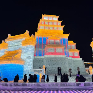 走进园区,巧夺天工的冰雕作品让人目不暇接。白天,规模宏大的冰雕景观晶莹剔透、光洁无瑕,仿佛《冰雪奇缘》的场景搬进现实。夜晚,绚丽多彩的灯光亮起,园区犹如琉璃仙境,惊艳夺目。因此,如果想领略冰雪大世界白天与黑夜不同的美,可提早入园。