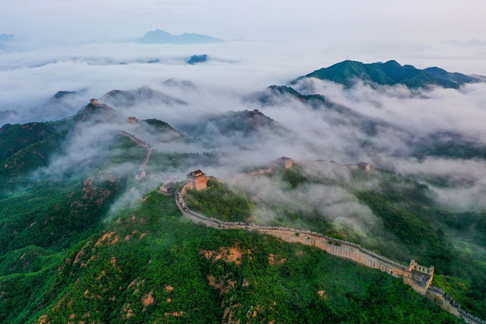 金山岭长城的夏天充满生机,树木葱郁,凉风习习。降雨过后,金山岭长城的温度和湿度有一定几率形成云海。在一个雨后的清晨,天蒙蒙亮,我站在家门口,看到山谷里的水蒸气化作雾气向空中升起。我背起相机,在天空刚刚露出鱼肚白时到达合适的拍摄位置。古朴的金山岭长城在碧绿的山间若隐若现,像一条巨龙横卧在崇山峻岭之上。云海翻腾,在金山岭长城与山间游动,蔚为壮观。