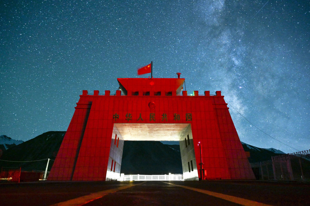 星空下的红其拉甫国门(2023年9月20日摄)。新华社记者 李响 摄