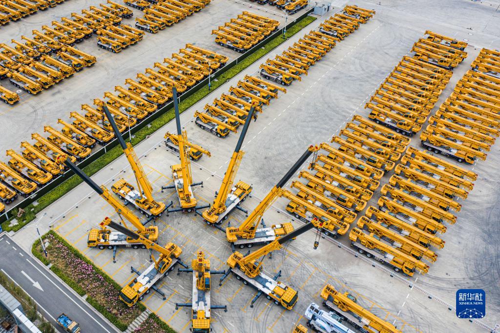 这是2022年5月9日拍摄的江苏徐工集团重型机械有限公司的产品调试场(无人机照片)。新华社发