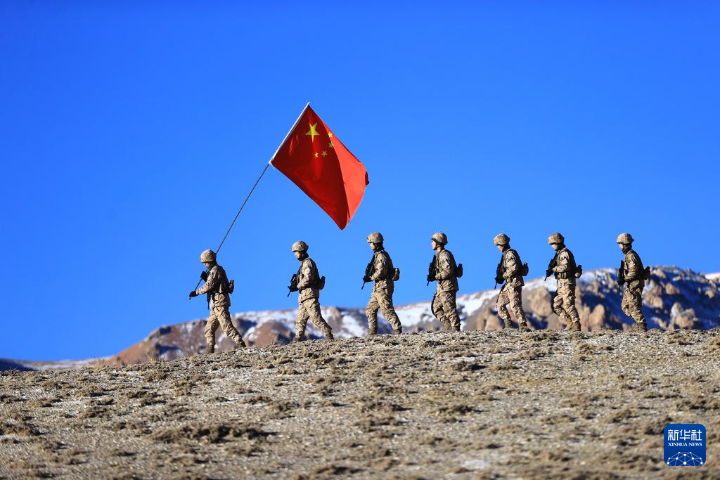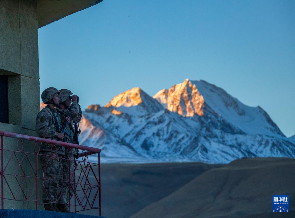 1月1日,驻守在喜马拉雅山脉腹地的阿里军分区某边防团官兵在站哨执勤。新华社发(刘晓东 摄)