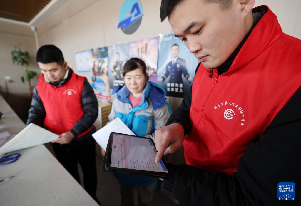 1月1日,在山东省临沂市沂南县岸堤镇,普查员对个体经营户进行信息登记。新华社发(王彦冰摄)