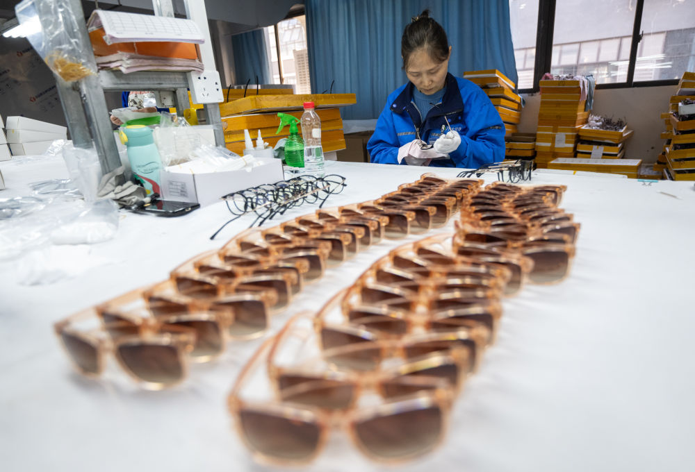 奉节生态工业园区内,重庆万大眼镜有限公司的员工在忙碌(2023年11月28日摄)。新华每日电讯记者 肖艺九 摄