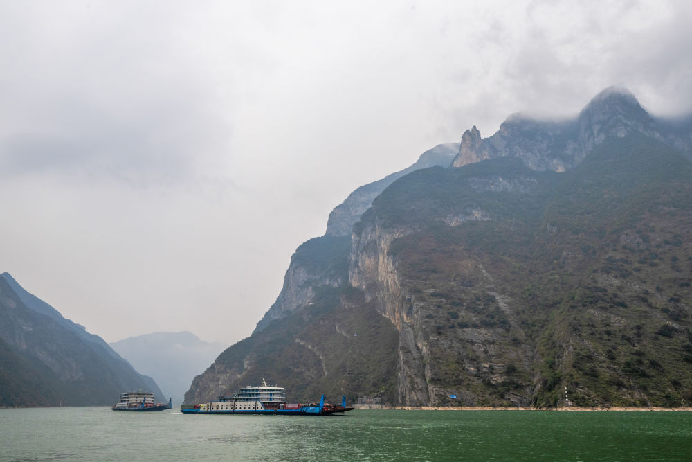 瞿塘雄,巫峡秀,西陵险。长江三峡中,巫峡以绮丽俊秀著称天下。行进第四日,便至巫峡。中午时分,蒙蒙细雨中,记者一行在巫峡口海事码头登船,由陆转水。