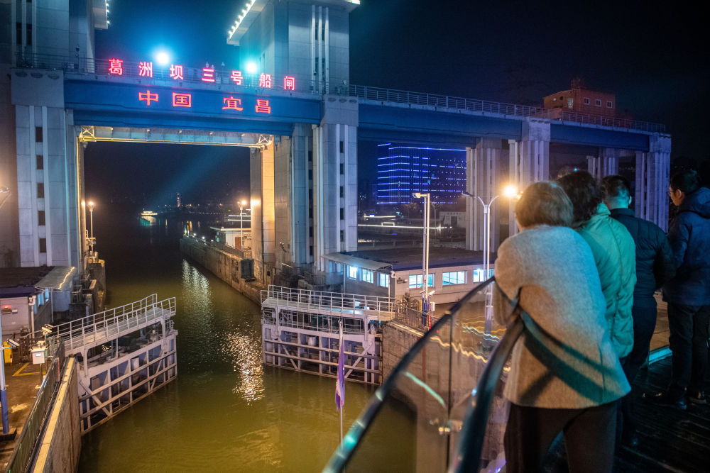 游客乘坐纯电游轮“长江三峡1”号通过葛洲坝三号船闸(2023年12月1日摄)。新华每日电讯记者 唐奕 摄