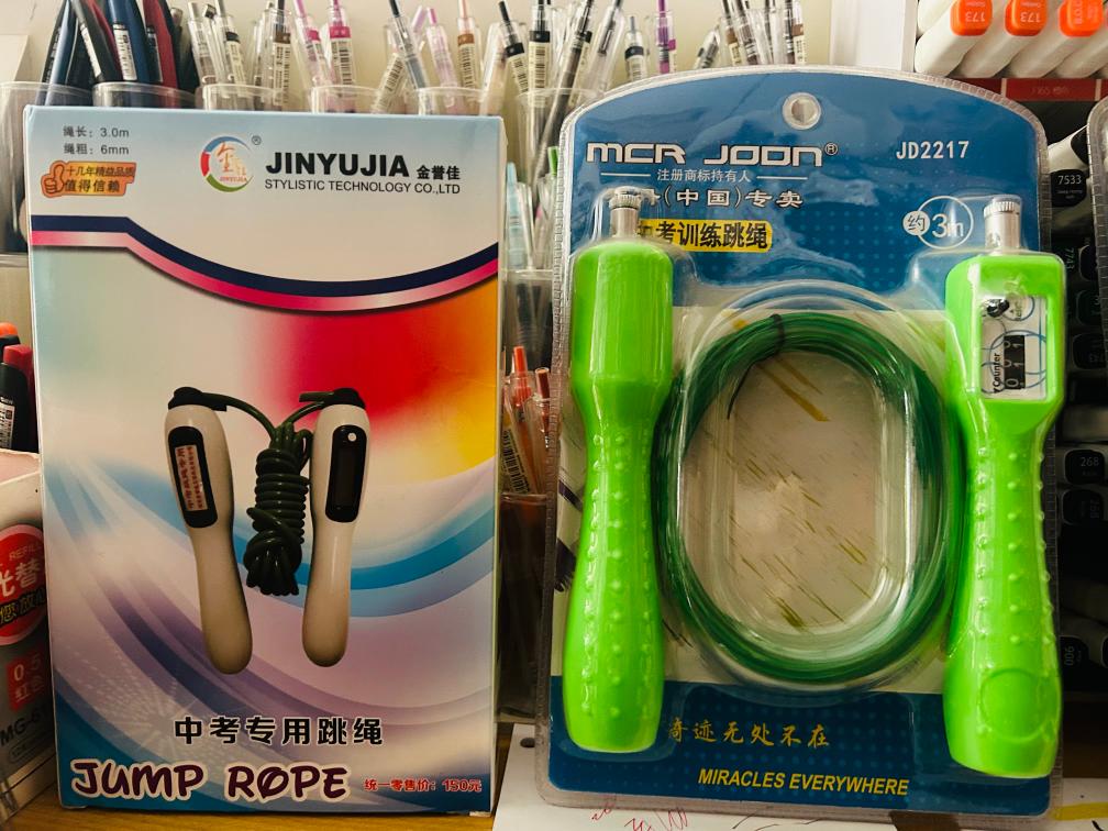 “中考跳绳和普通跳绳的区别我也不懂,反正中学要求用这种,我们就去批发这种。一根零售价110元(带计数功能)。”多名店主坦露,价格这么贵,只有中学生才买,他们也不敢多批发,多了怕卖不掉。