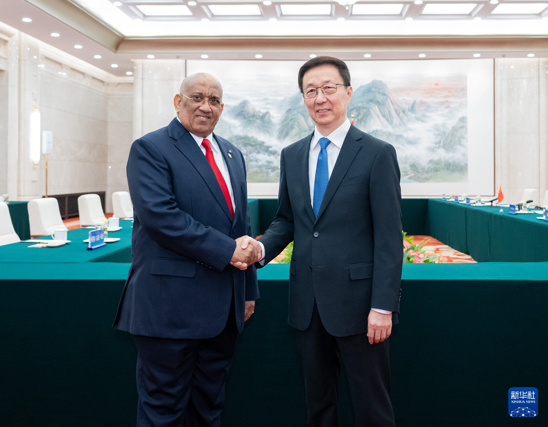 1月23日,国家副主席韩正在北京会见吉布提国民议会议长迪莱塔。