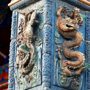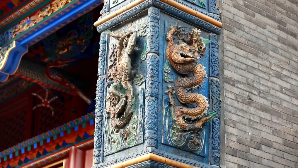 在有近400年历史的沈阳故宫里,“龙”的元素随处可见,特别是建筑上的“龙”,如大政殿的金龙盘柱、格扇门上镂空雕刻的浑金团龙,崇政殿上的龙形抱头梁和五彩琉璃墀头,都代表了清早期的龙形生动健硕的典型特征。