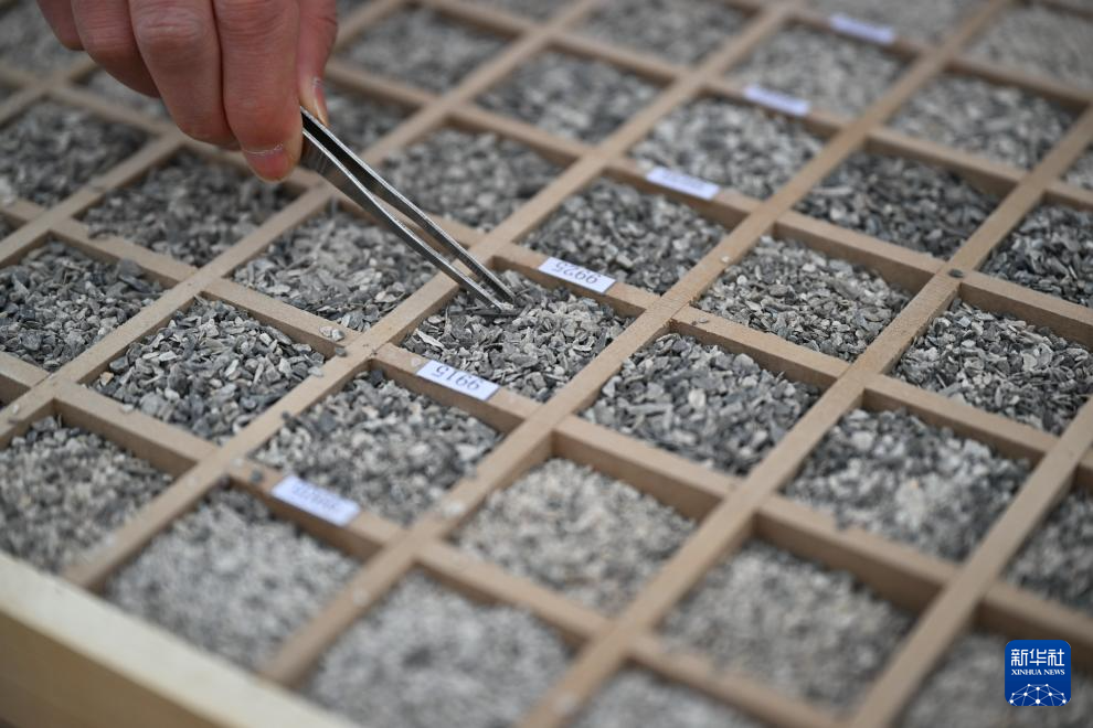 3月3日,科研人员在深地塔科1井研究从地底深处取上来的岩屑。新华社记者 李响 摄