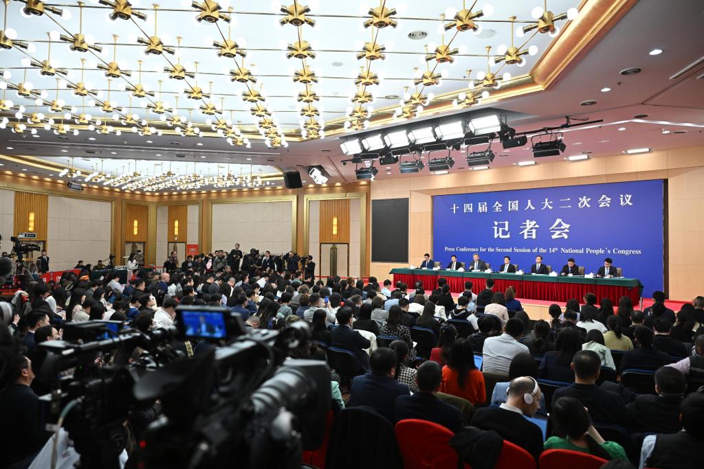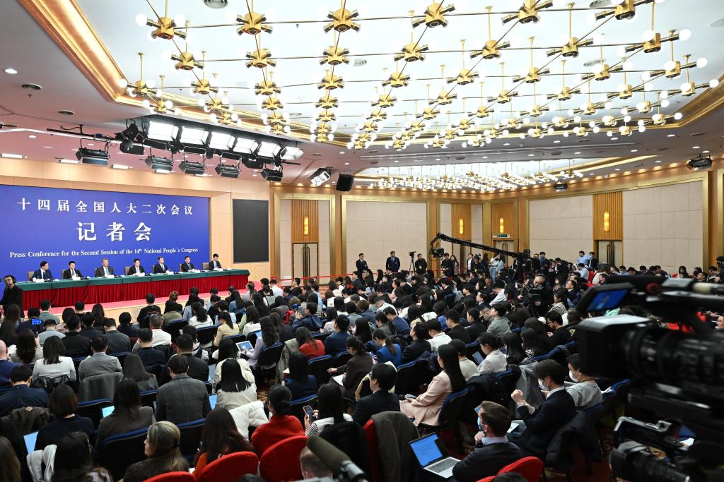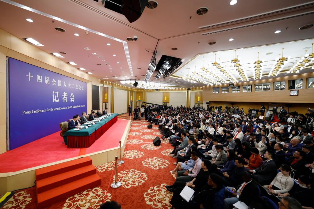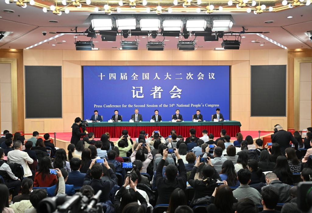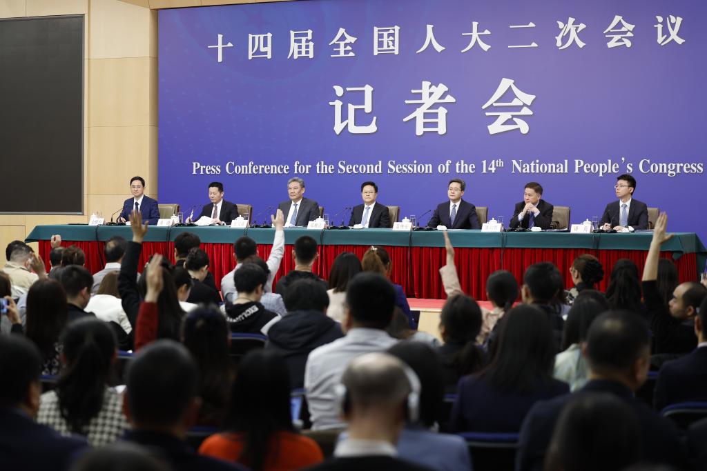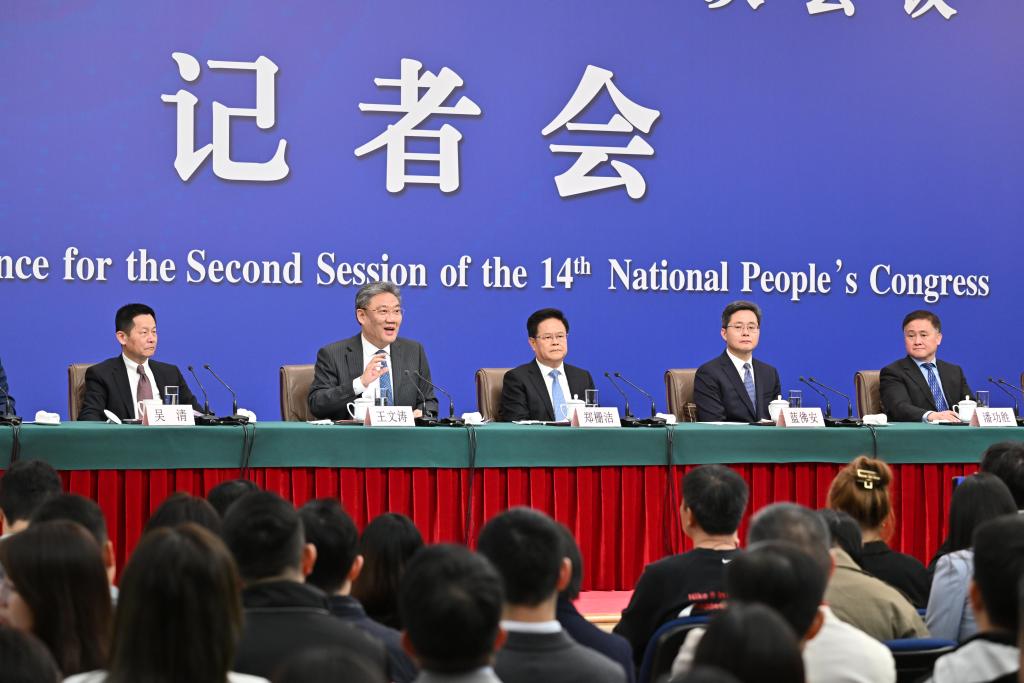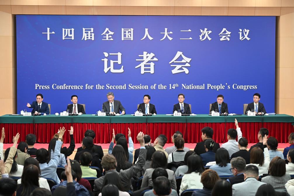 3月6日,十四届全国人大二次会议在北京梅地亚中心新闻发布厅举行记者会。国家发展和改革委员会主任郑栅洁、财政部部长蓝佛安、商务部部长王文涛、中国人民银行行长潘功胜、中国证券监督管理委员会主席吴清就发展改革、财政预算、商务、金融证券等相关问题回答中外记者提问。