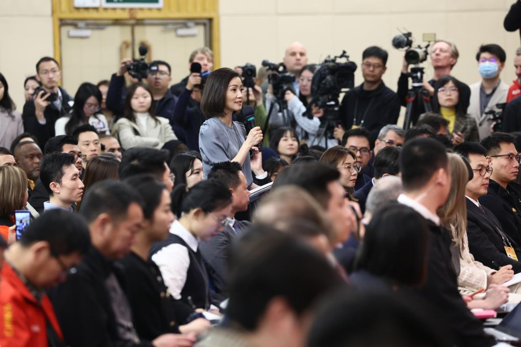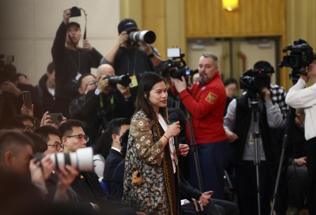 3月7日,十四届全国人大二次会议在北京梅地亚中心新闻发布厅举行记者会。中共中央政治局委员、外交部长王毅就中国外交政策和对外关系相关问题回答中外记者提问。这是记者在提问。
