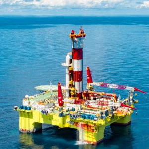 “深蓝探索”号钻井平台在开平南油田进行钻探作业(2023年11月3日摄)。新华社发pagebreakpagebreak