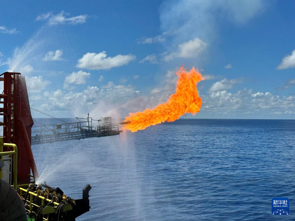 “南海八号”钻井平台在开平南油田探井进行产量测试(2023年7月10日摄)。新华社发pagebreakpagebreak