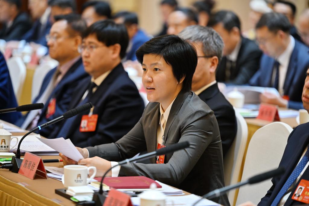 3月7日,陈雨佳代表在十四届全国人大二次会议黑龙江代表团全体会议上发言。