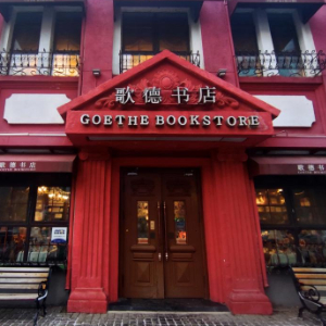 结合书轴和酒桶元素设计的笔筒组成建筑外立面,书轴上是用德文书写的歌德诗歌“爱在身边”。2016年以来,这里成为集图书、唱片、咖啡、文创为一体的文化体验空间,许多人来此看书小坐,偷得浮生半日闲。