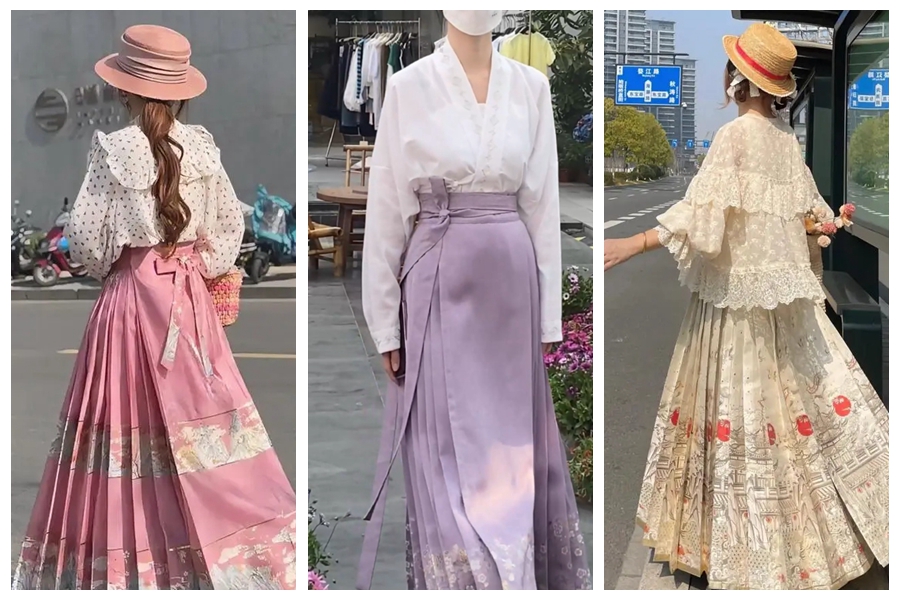 眼下,人们在日常生活中的不同场景穿着具有春意的各类马面裙