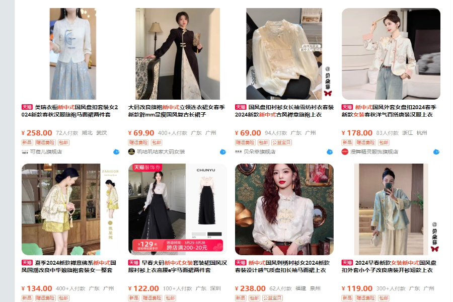 在电商平台上,适合不同场景的各类“新中式”服饰正在火热售卖