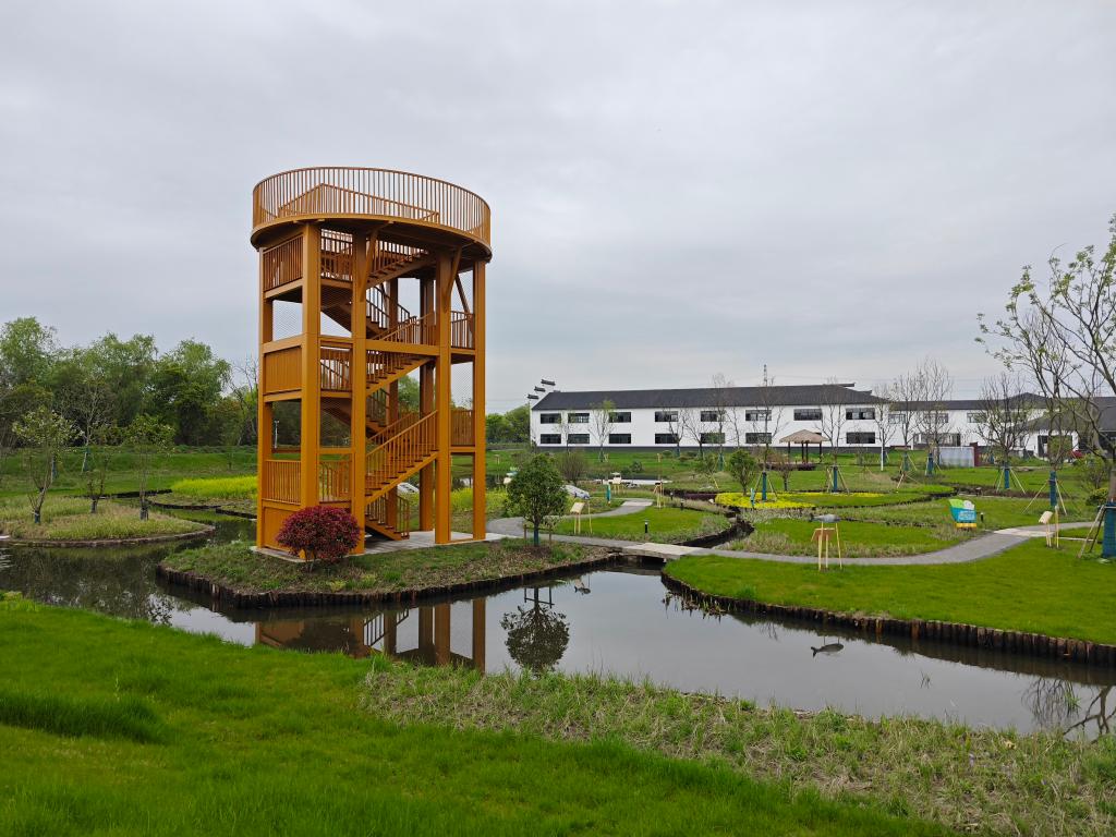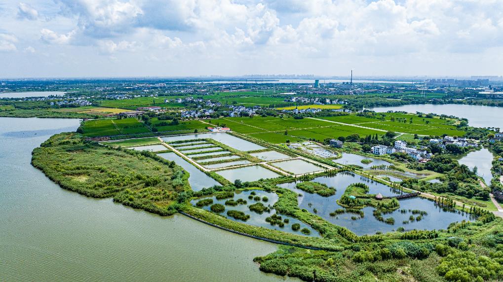 吴江区七都镇开弦弓村打造的生态农业景观“山水桑田”一角。 新华社记者柯高阳 摄