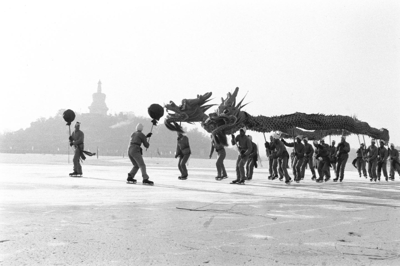1980年,北京市北海公园举行具有民族特色的滑冰表演“龙舞”。