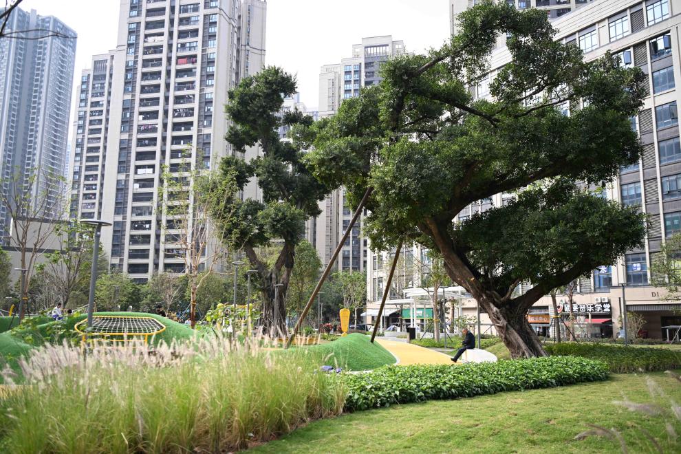 2023年11月17日,市民在重庆璧山万家岩口袋公园游玩。