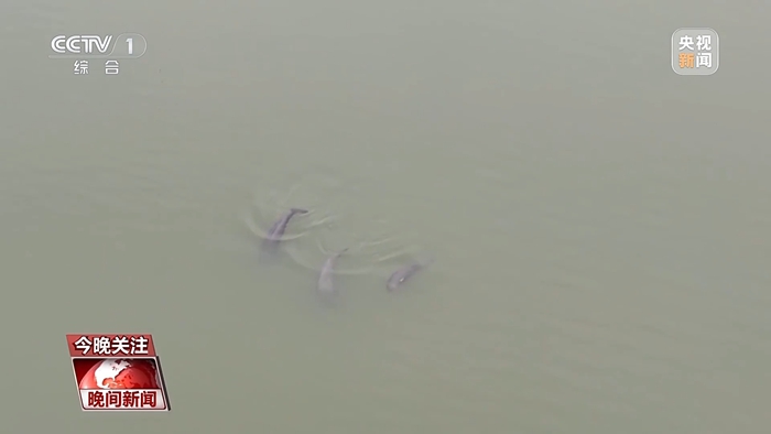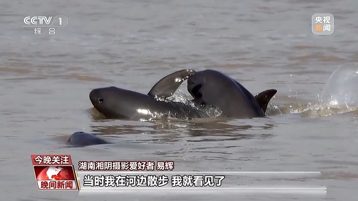 湖南湘阴摄影爱好者 易辉:当时我在河边散步,我就看见了,因为我平时都是带着装备走的。就看见水面不太平静,我当时就是无人机直接飞到那边去了,结果就发现好多(江豚),根本拍不过来。