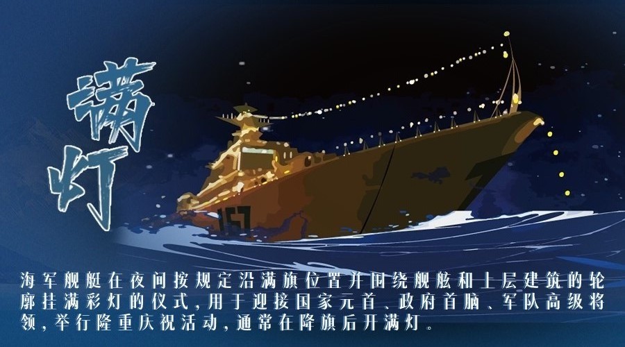 满旗、满灯、鸣放礼炮、站坡……