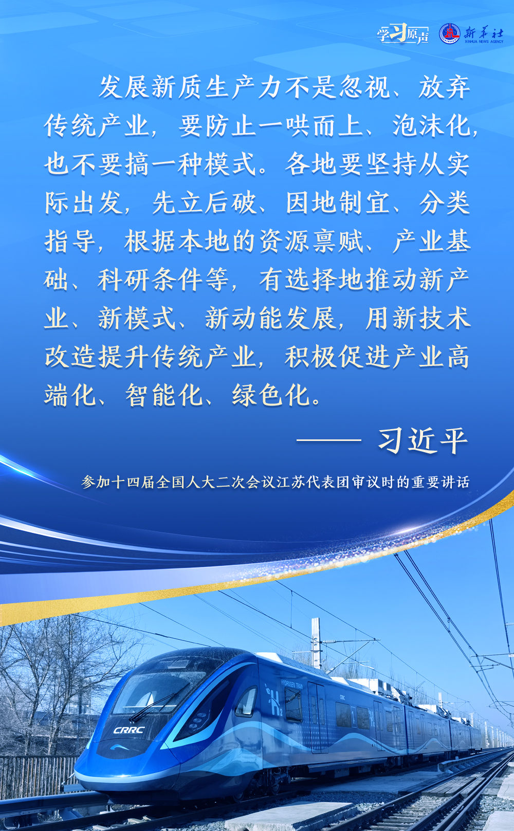 习近平总书记一系列重要论述,进一步深化了对生产力发展规律的认识,是对马克思主义生产力理论的重大创新和发展,为我们发展新质生产力、推动高质量发展提供了科学指引,注入强大思想和行动力量。