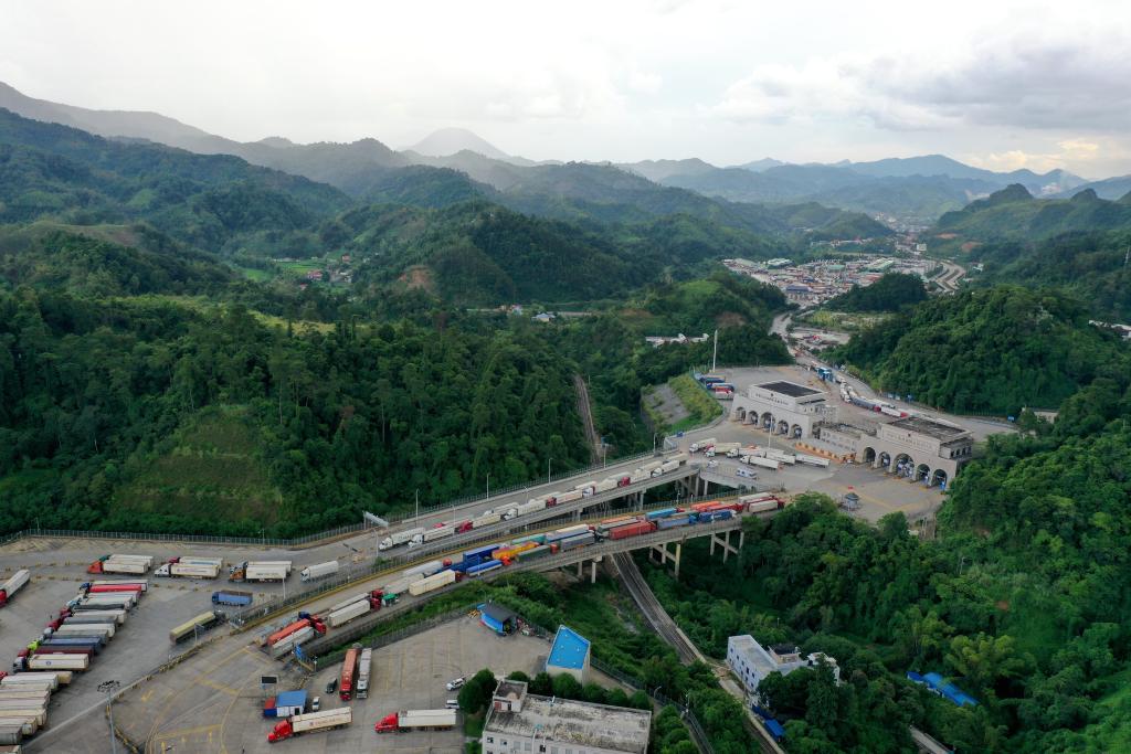 这是繁忙的广西凭祥友谊关口岸(2023年9月9日摄,无人机照片)。新华社记者 曹祎铭 摄