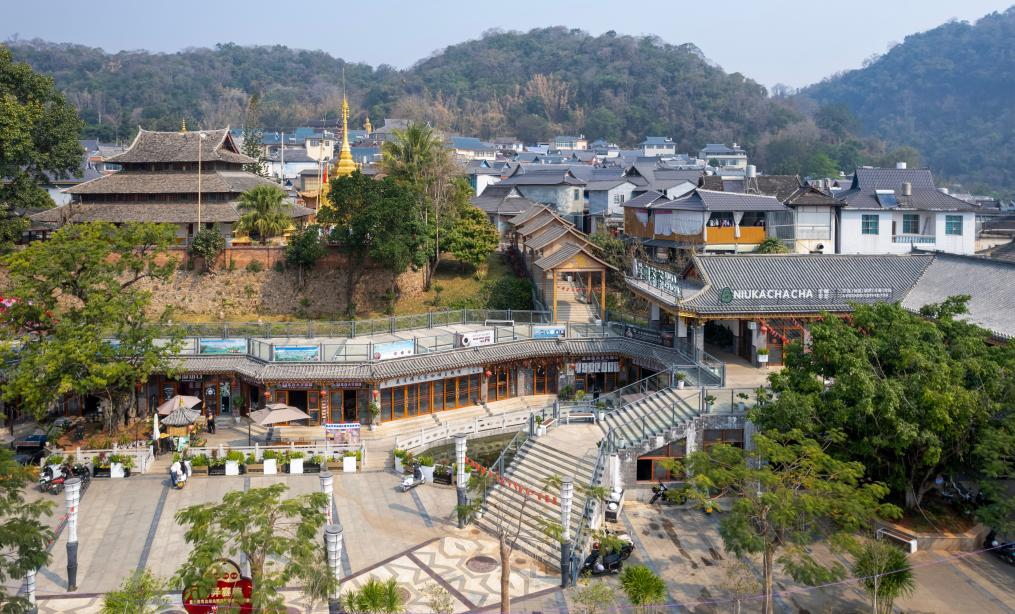 这是2024年3月19日拍摄的云南省孟连县精品咖啡主题街(无人机照片)。新华社记者 陈欣波 摄