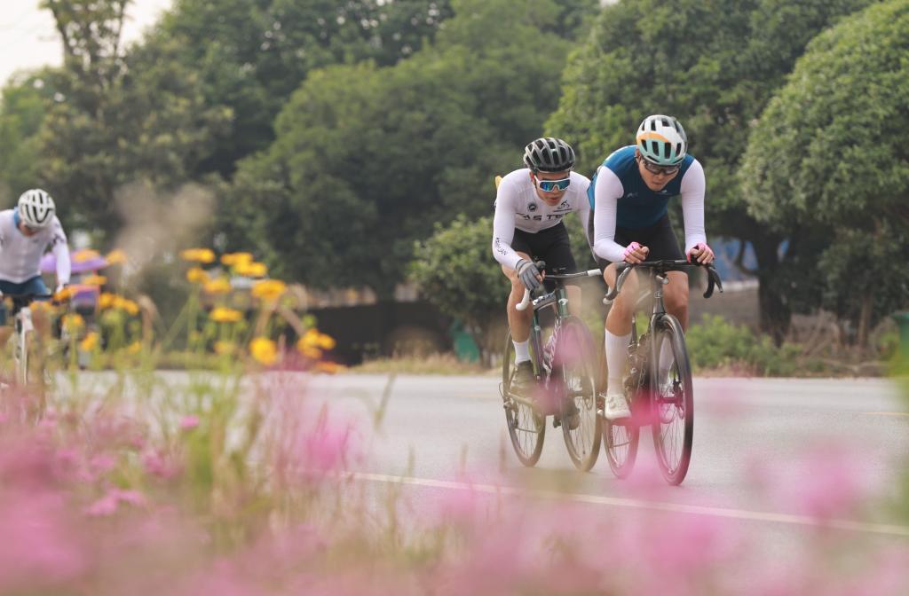 5月18日,骑行爱好者在骑行途中。新华社发(吴勇兵摄)