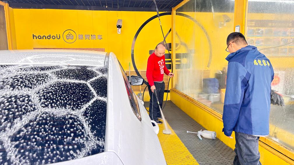 憨兜家园的员工正在洗车。新华社记者李志浩 摄