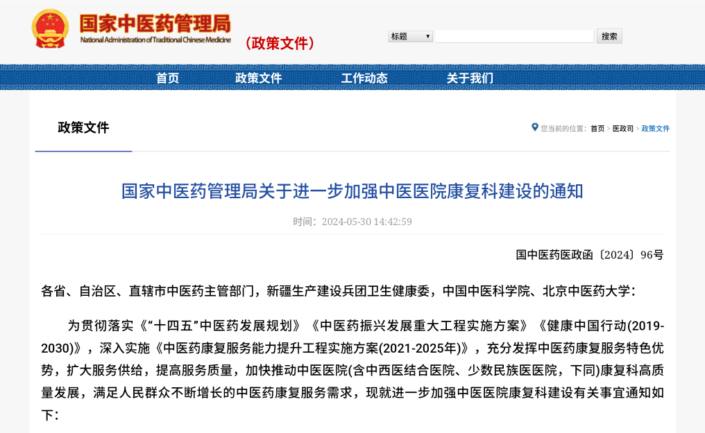 为满足群众多样化、多层次的健康服务需求,通知还鼓励通过“互联网+中医康复服务”、家庭病床、上门巡诊等方式推动中医康复技术进社区、进农村、进家庭,为有迫切康复服务需求的人群提供居家中医康复医疗、指导等服务。