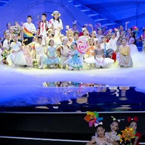 主题演出以“我和祖国一起成长”为主题,分为“生而向阳”“灿烂时光”“一路绽放”“春风雨露”“同心圆梦”五个篇章。演出序幕拉开,在璀璨的舞台上,孩子们身着五彩斑斓的民族服饰,手牵手快乐地起舞,共同编织出一幅绚丽多彩的民族团结画卷。音乐舞蹈剧《追梦·传承》以展现时代的变迁,激励广大青少年铭记历史、发奋图强、建设祖国;情景节目《融画小精灵》将华阴老腔、皮影戏、儿童舞蹈等艺术元素跨界融合,展现出中华优秀传统文化的独特魅力;情景秀《目望苍穹》将香港青少年的武术表演与内地青少年的流行舞蹈相结合,赢得观众阵阵掌声……主题演出通过音乐情景剧、民族歌舞、多媒体戏剧表演、国风时装秀、京剧新编等丰富多彩的艺术形式,讲述了新时代青少年儿童与祖国一起成长的故事。