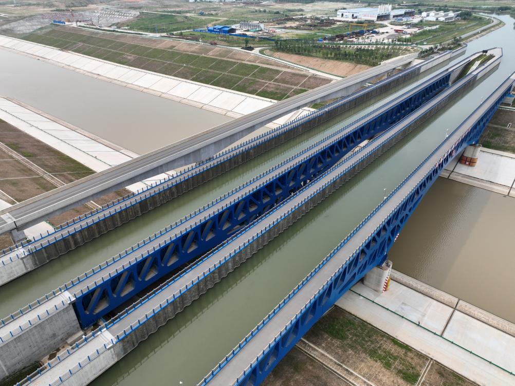 这是6月7日在安徽合肥拍摄的引江济淮工程淠河总干渠渡槽。(新华社记者 刘力航 摄)