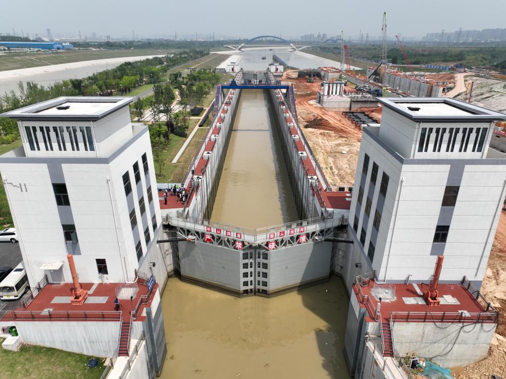 这是6月7日在安徽合肥拍摄的引江济淮工程蜀山船闸。(刘天宇 摄)