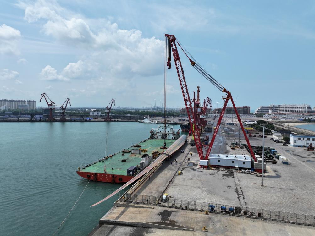 海上风电风轮叶片在海南东方装船发运。(受访对象供图)