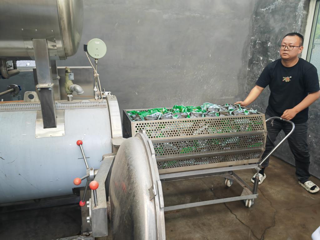 刘军芳正在对粽子进行高温灭菌。新华社记者王劲玉 摄