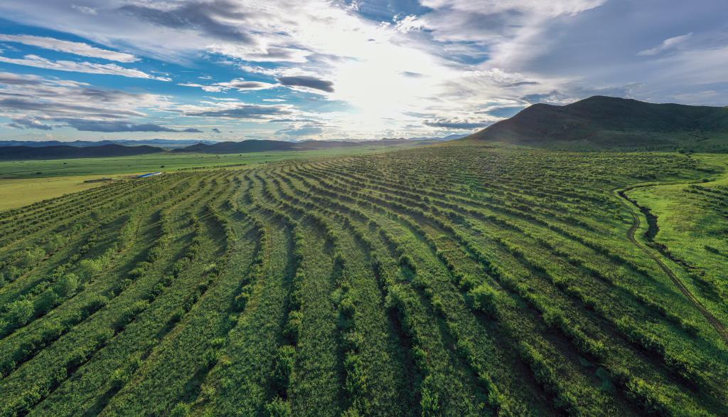 内蒙古兴安盟科尔沁右翼中旗额木庭高勒苏木布拉格台嘎查的林果基地。(受访单位供图)