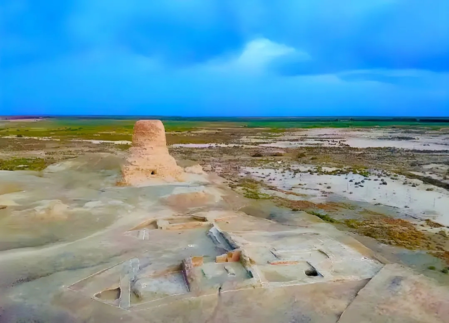 ▲莫尔寺遗址发掘现场:远处为圆形塔,近处为大佛殿和僧舍建筑基址。
